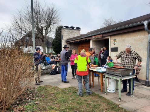 „Der Einsatz der Freiwilligen ist unverzichtbar für den Erhalt unserer Landschaft. Es ist inspirierend zu sehen, wie viel Engagement und Liebe zur Natur hier zusammenkommen“, betonten die Organisatoren des Albvereins. „Ohne die Hilfe von so vielen motivierten Menschen wäre dieser Landschaftspflegetag nicht möglich gewesen.“ Ein herzliches Dankeschön geht an die zahlreichen Freiwilligen, die sich tatkräftig eingesetzt haben, um die Natur in unserer Region zu bewahren. Nach dem Arbeitseinsatz schmeckten Allen das Essen! Foto: B.Euchner |